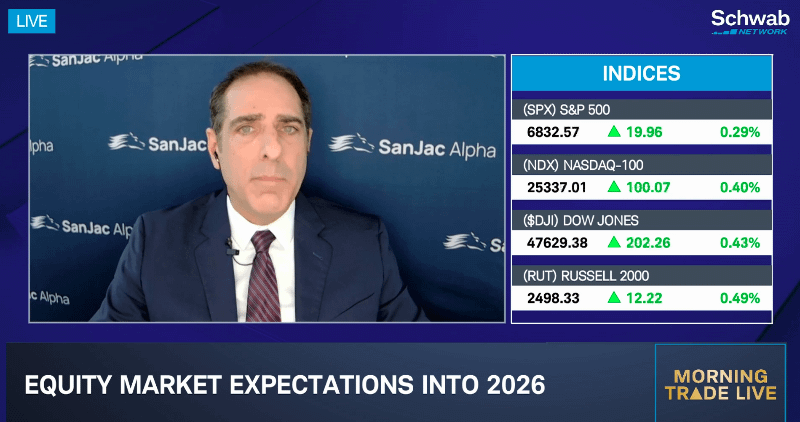 With the Nasdaq up ~20% and the S&P 500 up ~15%, SanJac Alpha CIO Andy Wells believes the market will be in a good place if it maintains these gains through year end. He shares his outlook with Schwab.